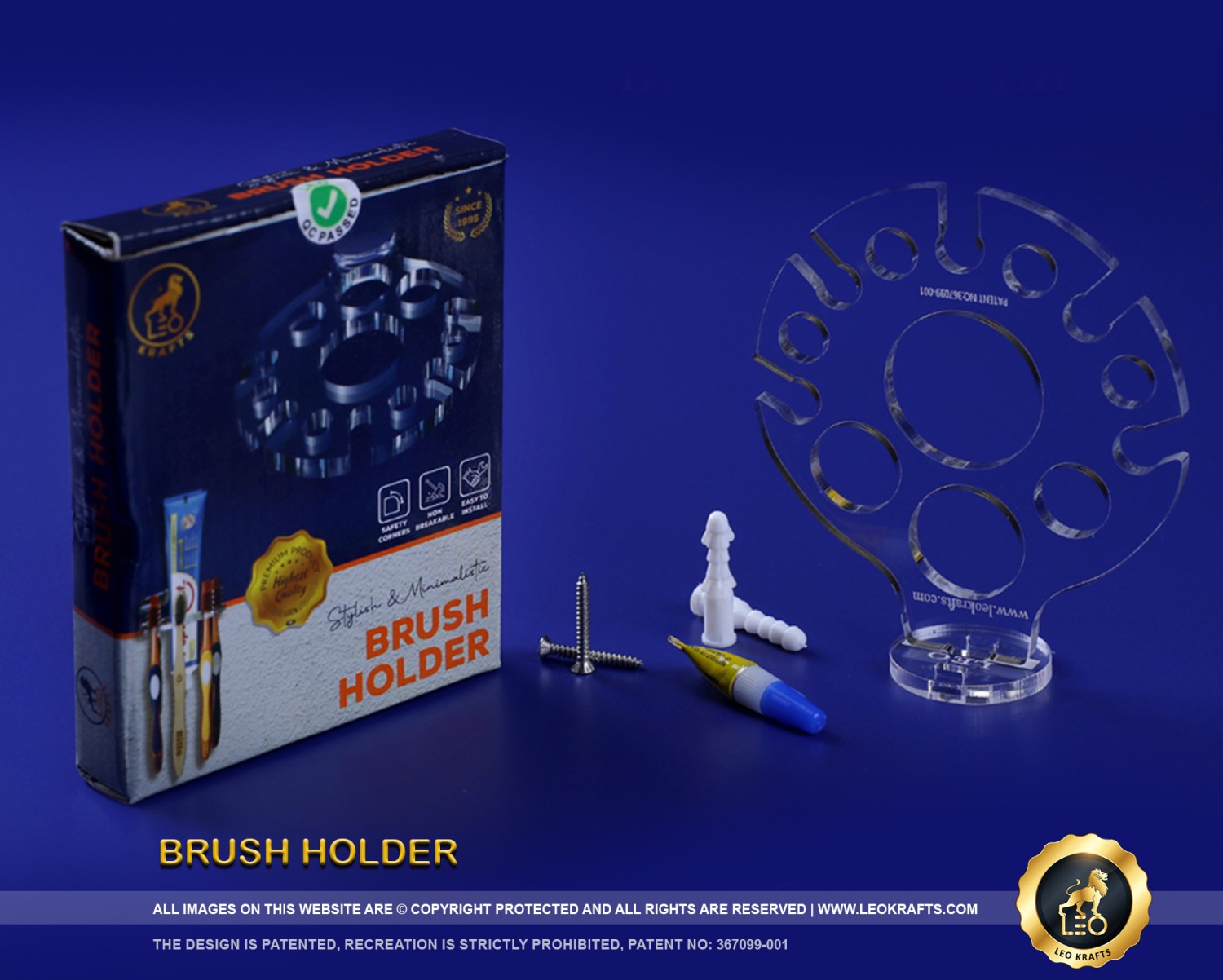 Stylish and Minimalistic Brush Holder or Multipurpose Holder, can withhold till 1 kg weight . Product is of advanced model. Made up of virgin material. Easy to handle and install. Product can hold 4 numbers of toothbrush and 5 tongue cleaners, tooth paste and others. Product can be used on ceramic, mosaic, marble and stone walls by using adhesive provided . In case of painted walls it can be screwed with the accessories provided and use it.