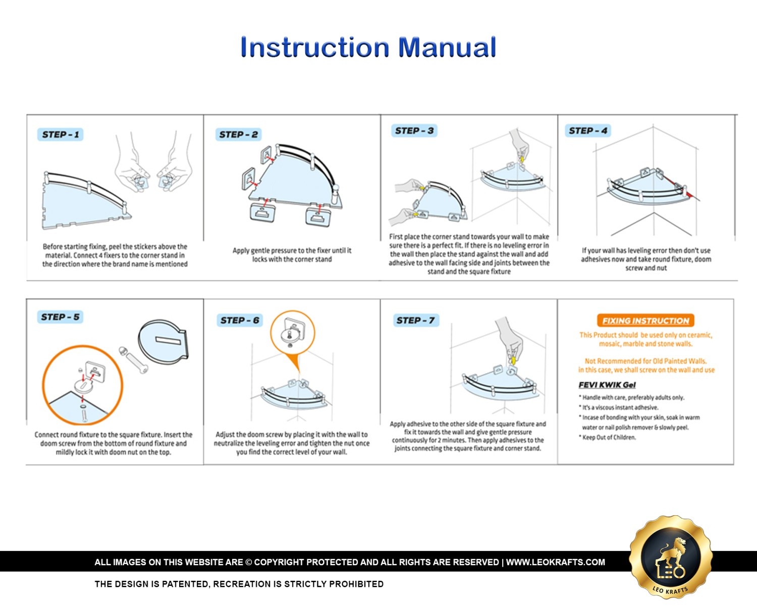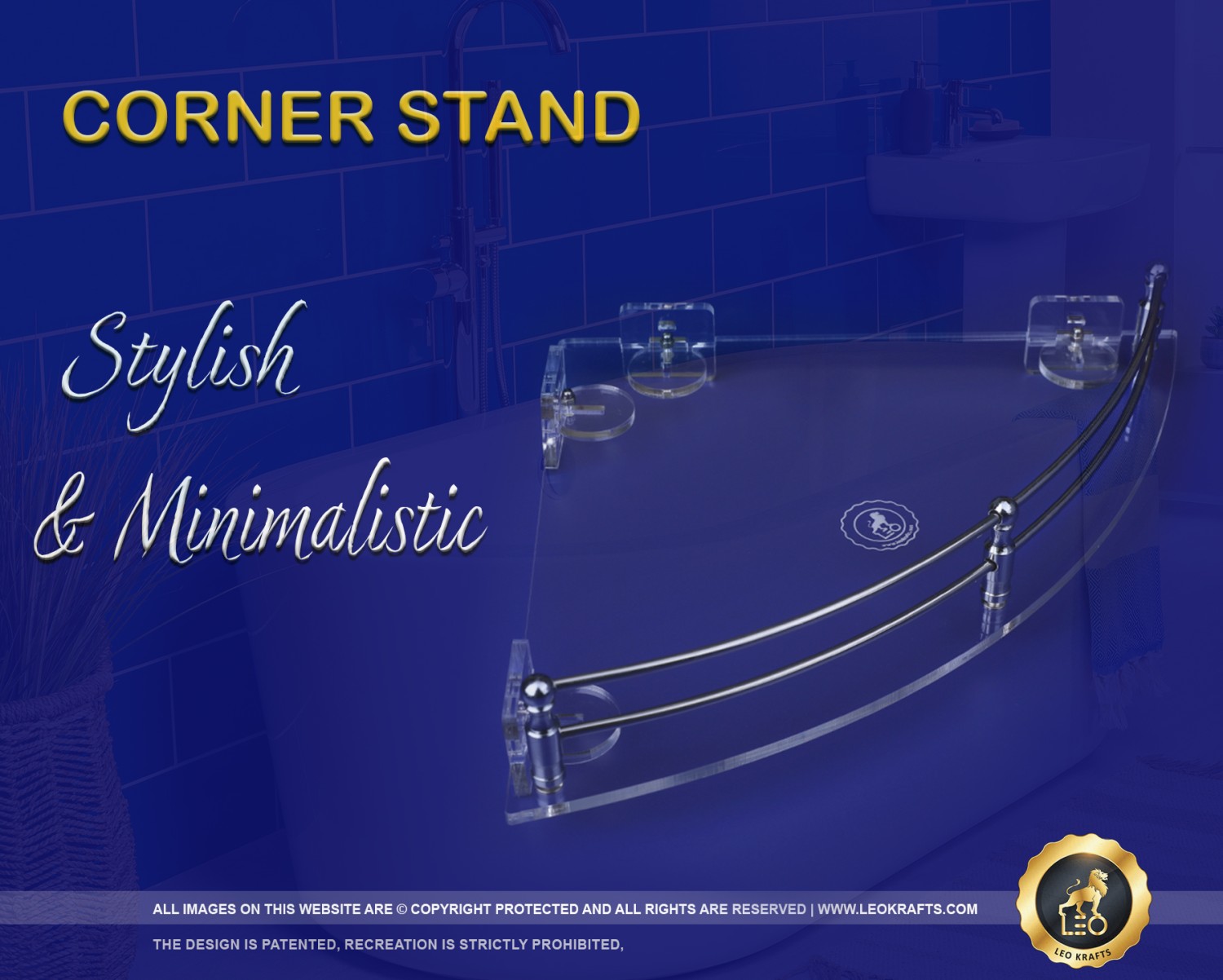Leo Krafts 10-Inch Corner Stand 5MM, made of 100% Virgin Material. This adhesive-type (203.2 mm x 203.2 mm) Acrylic Wall Shelf is not only stylish and minimalistic, but also eye-catching and practical. It is ideal for use in various areas including the Bathroom, Bedroom, Kitchen, Living Room, and Conference Hall. This durable product is designed for normal usage. It possesses an attractive and elegant look when installed.