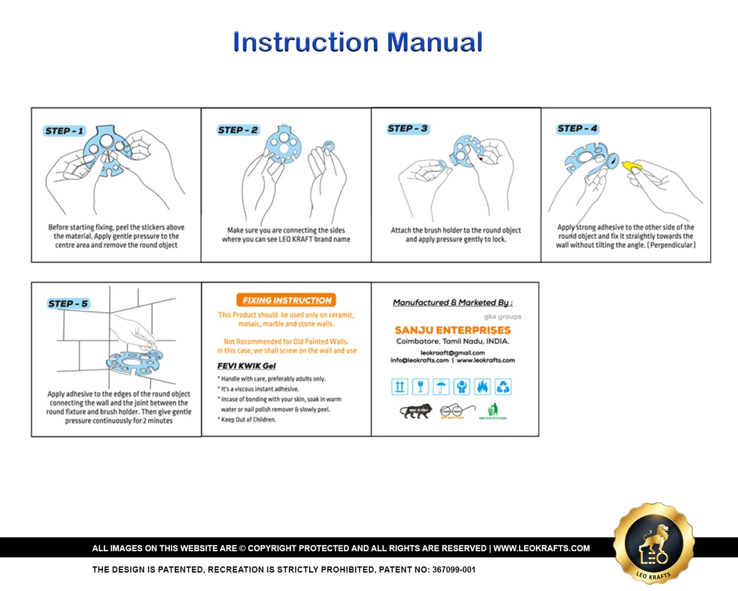 Stylish and Minimalistic Brush Holder or Multipurpose Holder, can withhold till 1 kg weight . Product is of advanced model. Made up of virgin material. Easy to handle and install. Product can hold 4 numbers of toothbrush and 5 tongue cleaners, tooth paste and others. Product can be used on ceramic, mosaic, marble and stone walls by using adhesive provided . In case of painted walls it can be screwed with the accessories provided and use it.